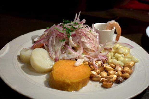 This popular spicy, yet health seafood plate is the signature dish of Peru. Made from raw fish cooked in lime juice and served with a spicy rocotto (pepper) sauce, Ceviche is best served at lunch time, next to the beach accompanied with a cold glass of beer.