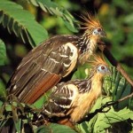 These can manage only short, clumsy flights. They form mating groups, and share the rearing of their offspring. The young have clawed wing bends, to help them clamber about in trees.