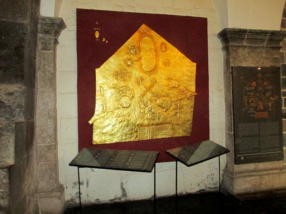 Korikancha – “Kori” meaning gold and “kancha” meaning open ground or place – was dedicated to the worship of the Sun God – Inti. Ancient chronicles describe Korikancha as having a garden of golden plants with leaves of beaten gold and stems of silver, solid gold corn cobs and twenty life-sized llamas with herders. The temple itself was lined with solid gold sheets that reflected sun light, and other golden objects including a solid gold disc studded with precious stones and bearing a human face representing the Sun God – Inti.