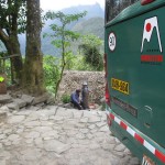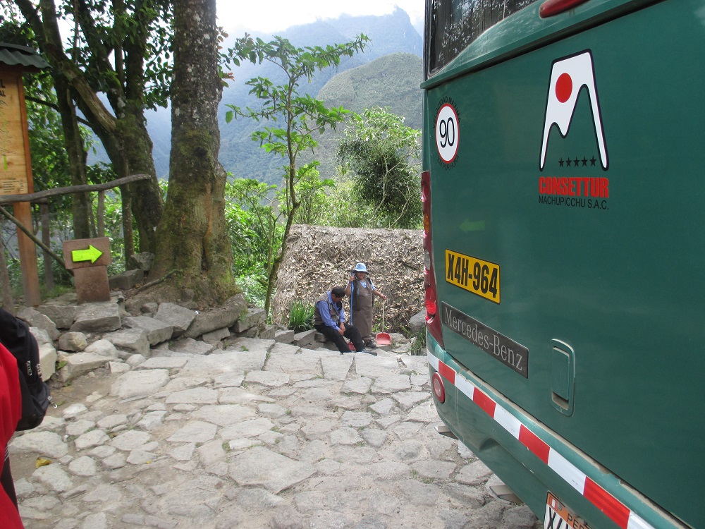 - Arrival at Machu Picchu (behind where shuttle buses arrive).