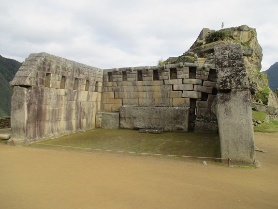Situated on the Sacred Plaza in the Urban Sector of Machu Picchu, the Main Temple is an impressive rectangular shaped building consisting of 2 lateral walls and 1 rear wall. The base of the temple is made up of large lithic stones which support more regular sized and precisely carved stones. The Main Temple features a total of 17 trapezoidal shaped niches which were most likely used for ceremonial offerings. The rear wall of the temple also has 6 large stone pegs, which were probably used to hang decorations or aid in some way the rituals carried out at the temple.