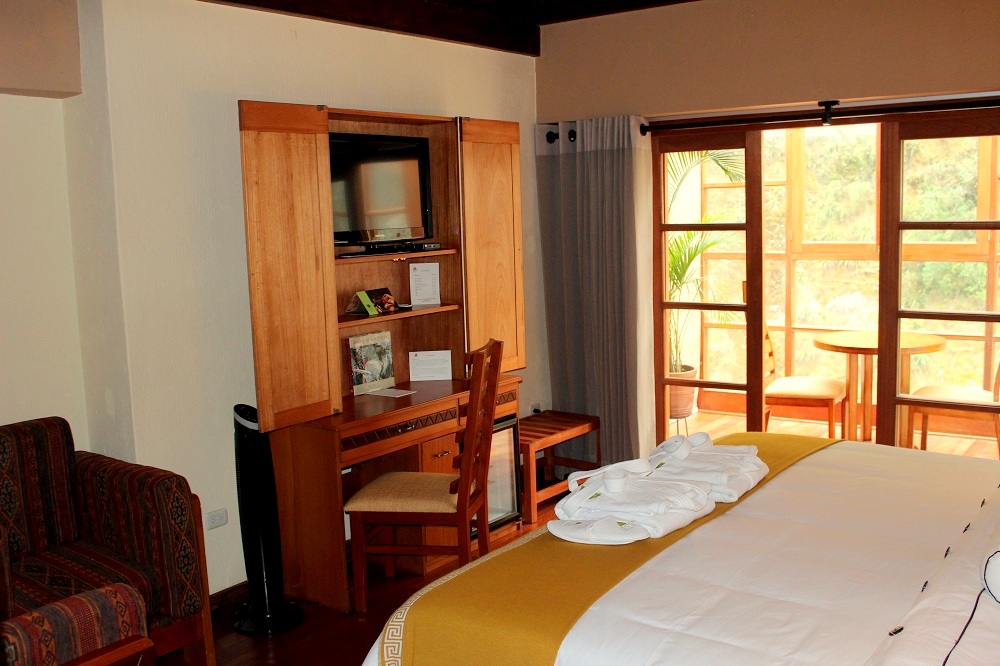 Located overlooking the Vilcanota River close to the train station, the Casa del Sol is well located for access to Aguas Calientes village and the main shuttle bus stop for travel to Machu Picchu. With a choice of 28 rooms across 3 classes: Superior Mountain View, Superior River View and Suite Sol Imperial, the hotel offers high quality accommodations superior to most hotels in town. Matrimonial rooms include 1 queen bed and twin rooms 2 oversized single beds. All rooms include a Spanish shower or bathtub, ample marble bathrooms, safety deposit box and cable TV. The Suite Sol Imperial includes a king bed and a romantic river view room with Jacuzzi and sitting area. On the lower floor of the hotel the K’intu Spa offers a hydrotherapy pool, a dry sauna, a steam room and massage/treatments room. Breakfast and dinner at the hotel’s Manko resto-bar is included within the price of a night’s stay.