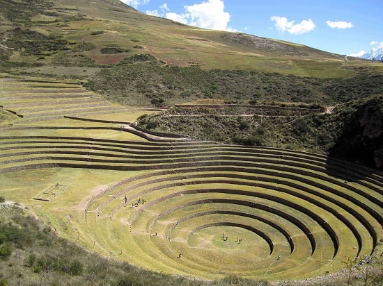 The deep bowl shaped hollows of Moray look like a Roman amphitheater. They are circular in shape and have stair like terraces climbing up to the valley floor above. The full purpose behind these concentric terraces isn’t fully known. However, it is widely believed that the ruins were once an agricultural laboratory used by the Incas. The circular terraces that lie here are thought to have been used as an agricultural research station. Their depth, design, and their orientation with regard to the sun and wind are all telltale signs that they have a specific purpose. Because of the different conditions at each level of the terraces there is a difference in temperature of 15 °C (27°F) from the top to the bottom. It is thought that the Incas used the terraces and the different temperatures to test crops and experiment with them. The different micro climates at the different levels allowed them to study wild vegetation. They used hybridization and modification to adapt crops to make them suitable for human consumption. Peru is famous for its many variations of potato. This is down to the Incas. They experimented and played around with science. And now Peru has more than 2,000 varieties of potato.