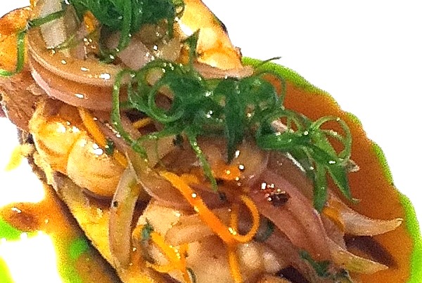 On arrival we were warmly greeted by a team of smartly uniformed staff and seated in the spacious and elegant rear dining room. We asked for the a la carte menu, knowing that we were not in the market for the rather pricy full tasting menu but the hasty response was a further recommendation for the aforementioned tasting menu which we duly declined. We had neither the time nor the funds to splash out quite so decadently, and by now were slightly tired of having the $100-a-head option touted at every opportunity. Rather ironically, however, it proved impossible to choose just one starter and one main course each so we opted for a slightly less daunting five-course ‘tasting menu-lite’ with wine pairing.