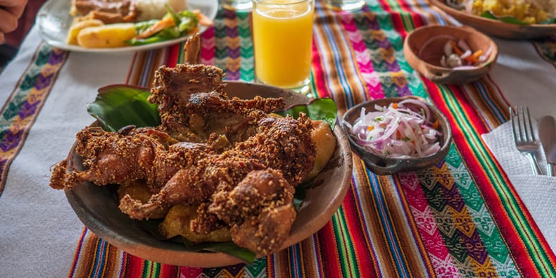 In here, you will be able to taste the most representative dishes of Cajamarca like Picante de papa con cuy, chicharrón con mote, humitas nativas, and caldo verde.